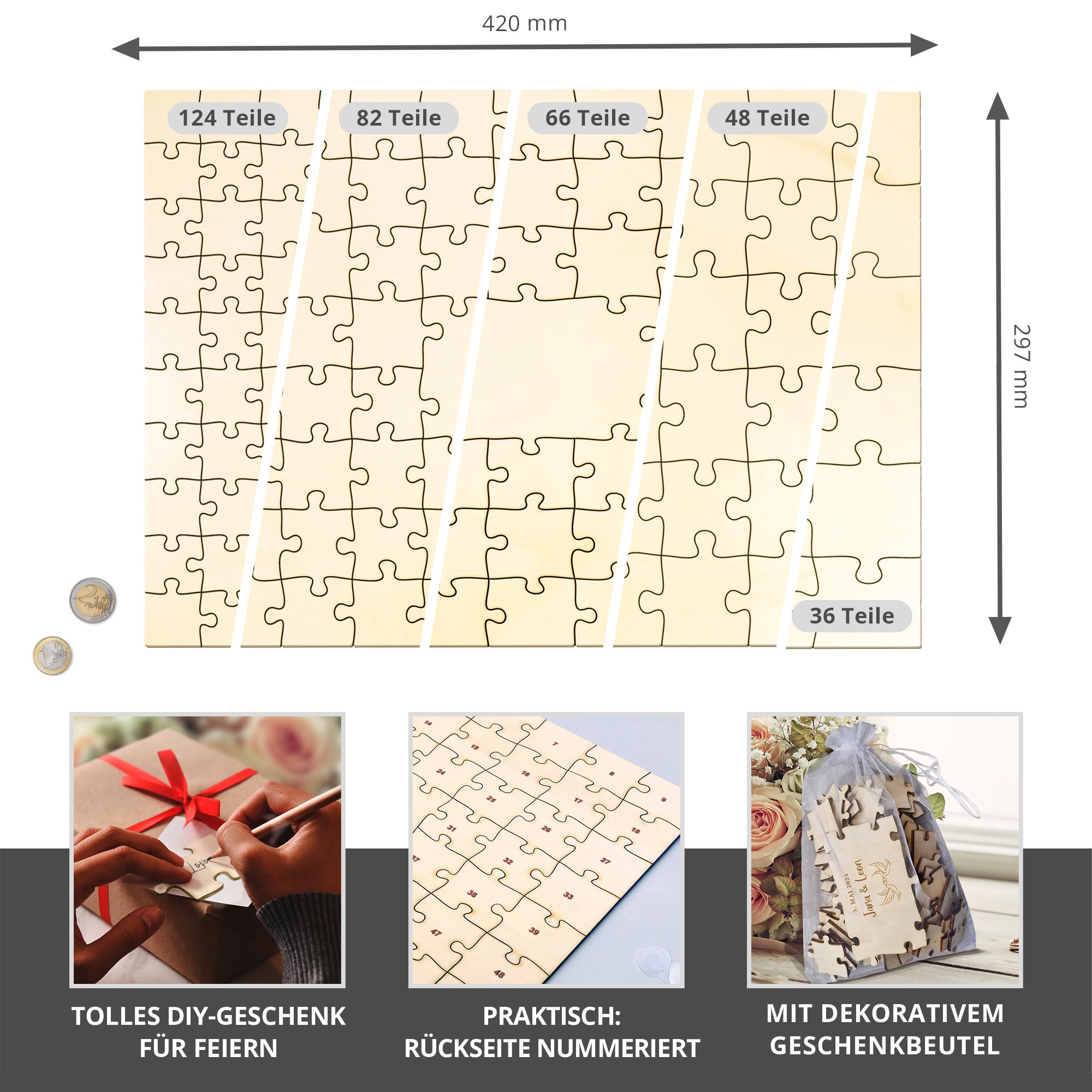 - Elegantes Andenken: Jeder Gast gestaltet ein individuelles Puzzleteil!