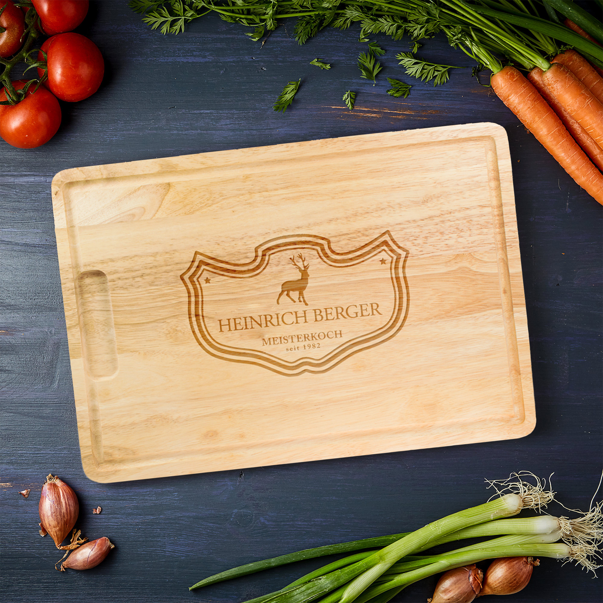 Bist Du auf der Suche nach einem tollen Geschenk für einen Hobby- oder sogar Profikoch? Dann haben wir hier bestimmt das Richtige für Dich: das Meisterkoch - graviertes Schneidebrett. Das Schneidebrett wird individuell mit Deinem Wunschnamen und Wunschjahr graviert, so dass das Geschenk zu einem ganz persönlichen Küchenutensil wird.
