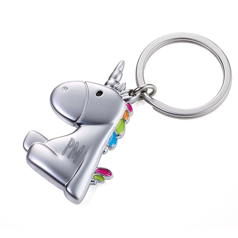 Der Anhänger ist in edlem und schlichten Silber gehalten. Nur Mähne und Schweif sind in bunten Regenbogenfarben gestaltet, sodass Dein neuer Anhänger garantiert sofort ins Auge fällt. So wirst Du Deinen Schlüssel ganz bestimmt nie wieder liegen lassen oder gar mit einem anderen verwechseln. Wenn Du möchtest, gravieren wir für Dich sogar ganz individuell Deine Initialen auf den Bauch des Einhorns. So wird er zu einem echten Unikat und zu einem absolut einzigartigen Geschenk! Befestige das süße Einhorn einfach mit dem beigefügten großen Ring an Deinem Schlüssel und mache Deinen Schlüsselbund zu einem echten Hingucker. Das niedliche und detailreich gestaltete Fabelwesen ist das perfekte Präsent zu diversen Anlässen für jeden Einhornfan und eignet sich genauso als kleines Mitbringsel zur Überraschung.