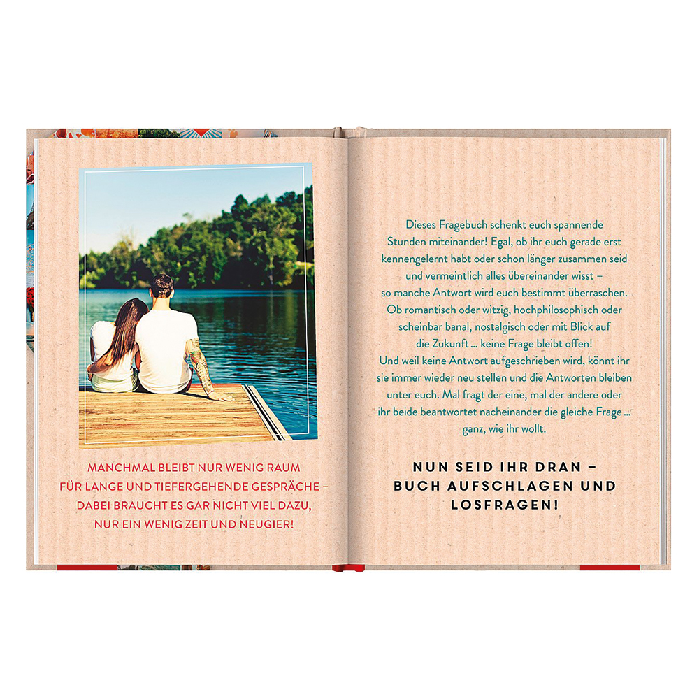 Das süße Frage-Buch für Verliebte überzeugt mit abwechslungsreichen Fragen, die sowohl frisch Verliebten als auch langzeitliebenden Paaren noch ein paar Überraschungen bescheren werden. Da die Fragen völlig zufällig angeordnet sind, und von tiefgründig über lustig bis hin zu sehr persönlich reichen, bleibt es eben bis zum Schluss spannend! Doch das Beste ist, dass Ihr Eure Antworten nur in mündlicher Form liefern könnt, sodass Ihr die Meinung auch mal ändern dürft und bei den intimsten Fragen/Antworten keine Sorge besteht, dass es jemand anders zu sehen bekommt. Dieses Buch sorgt garantiert für gute Laune und tolle Gesprächsthemen, und lässt Euch einander noch näher kommen als je zuvor! Eine kreative Geschenkidee zu romantischen Anlässen wie Valentinstag, Jahres- oder auch Hochzeitstag! Lasst Euch überraschen und genießt die gemeinsamen Stunden!
