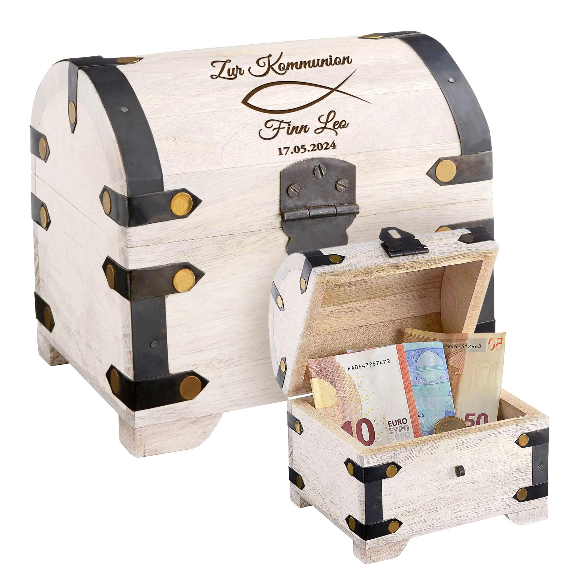 • Geld Schatztruhe zur Kommunion Fisch - Weiß