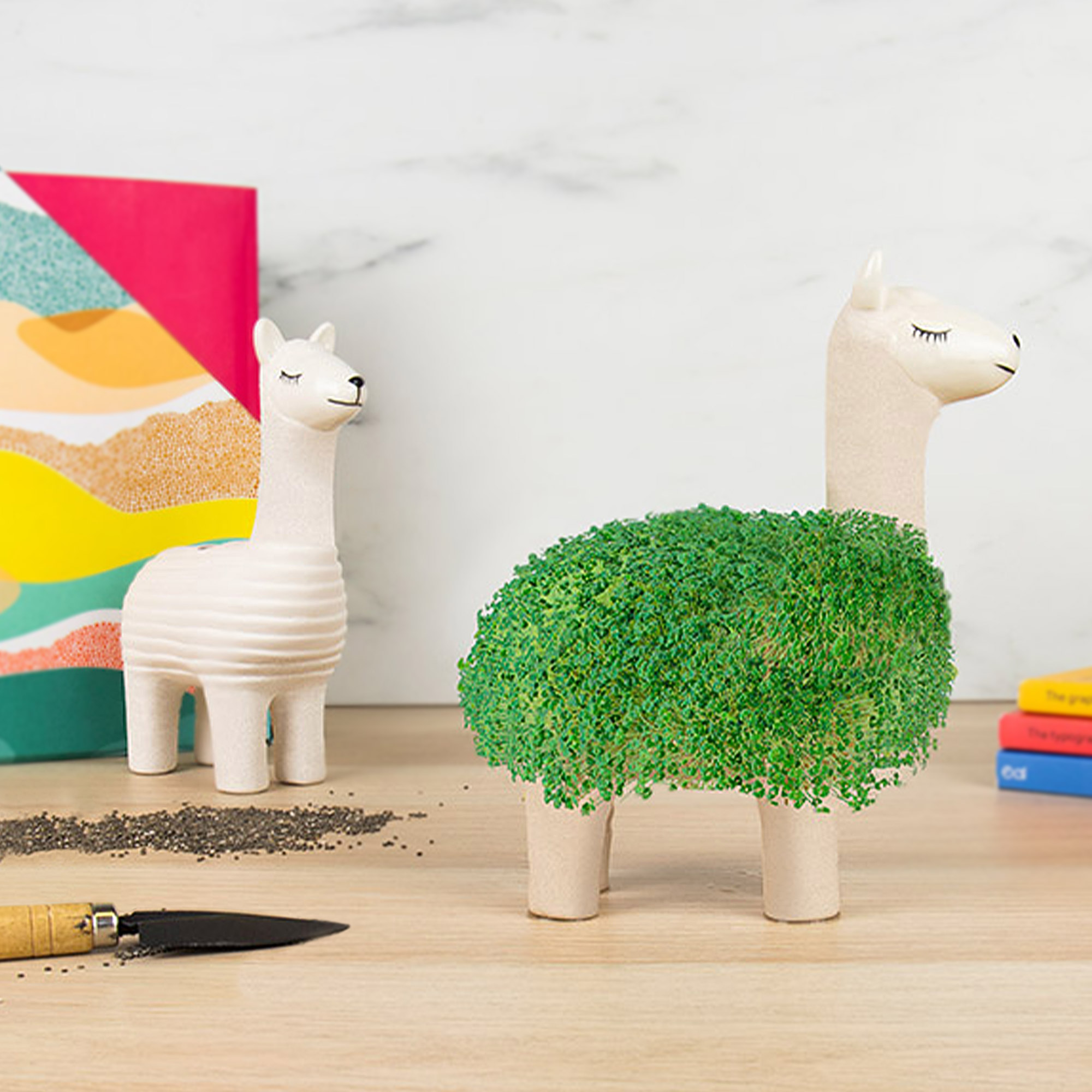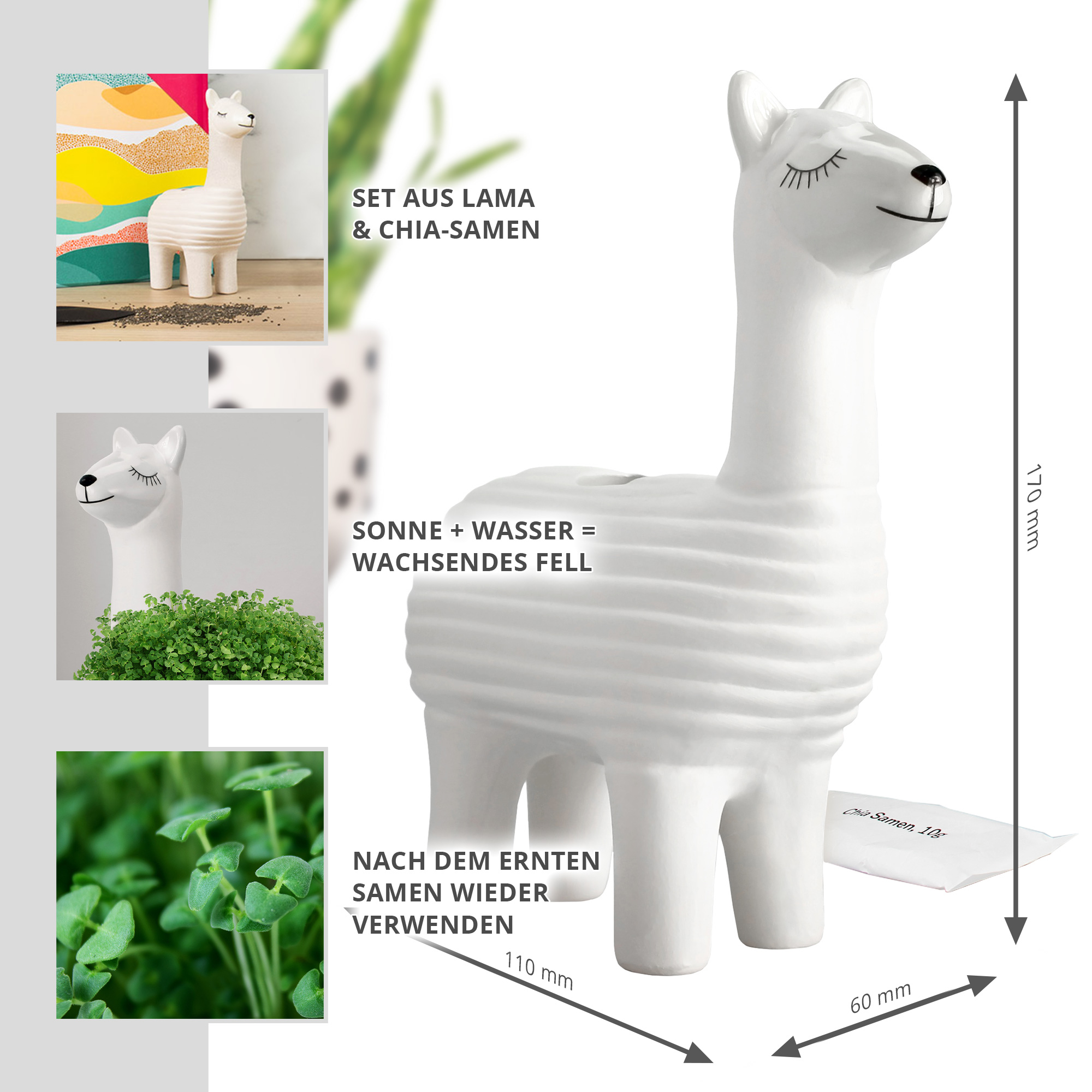 - Wiederverwendbares Lama Pflanzgefäß inklusive Chia Samen