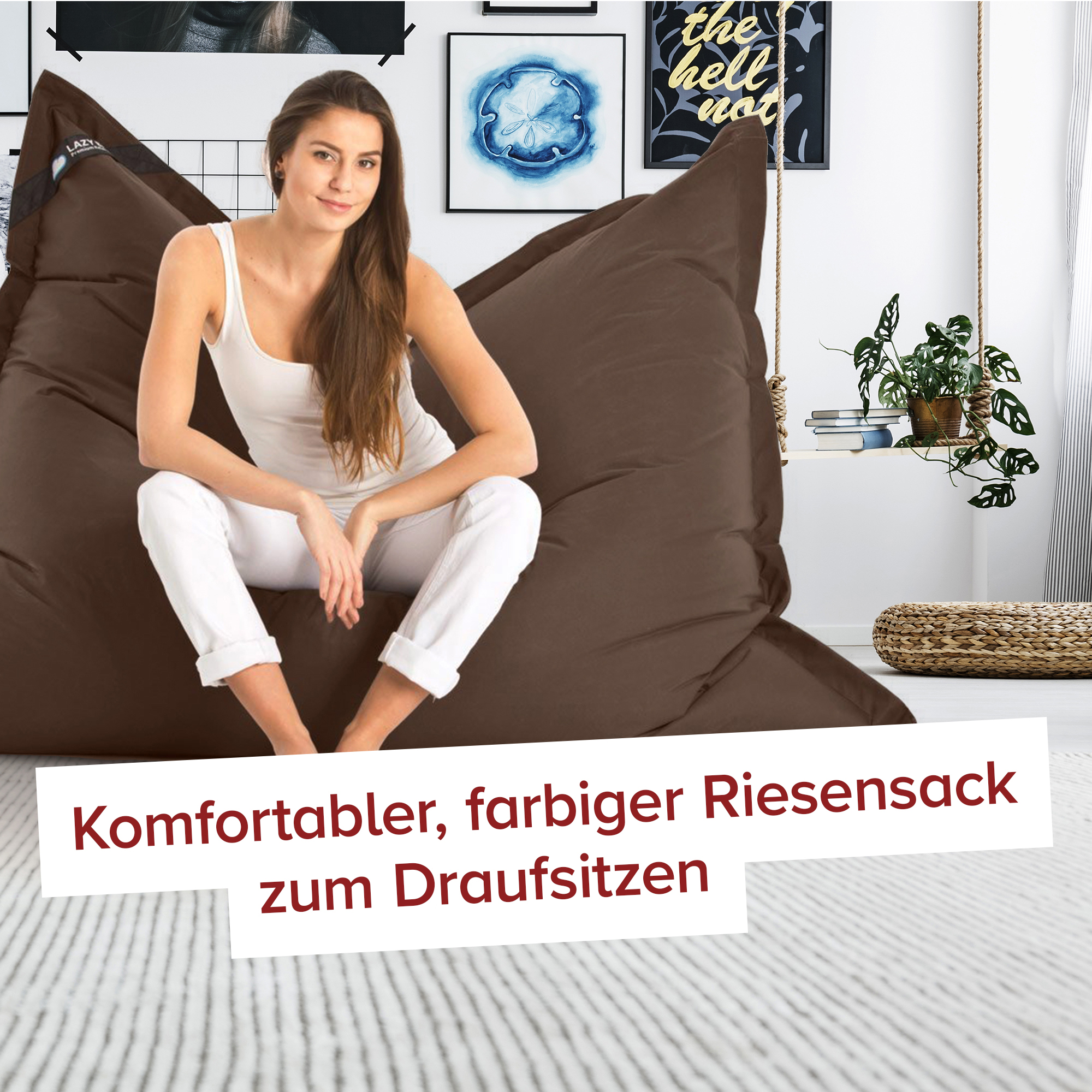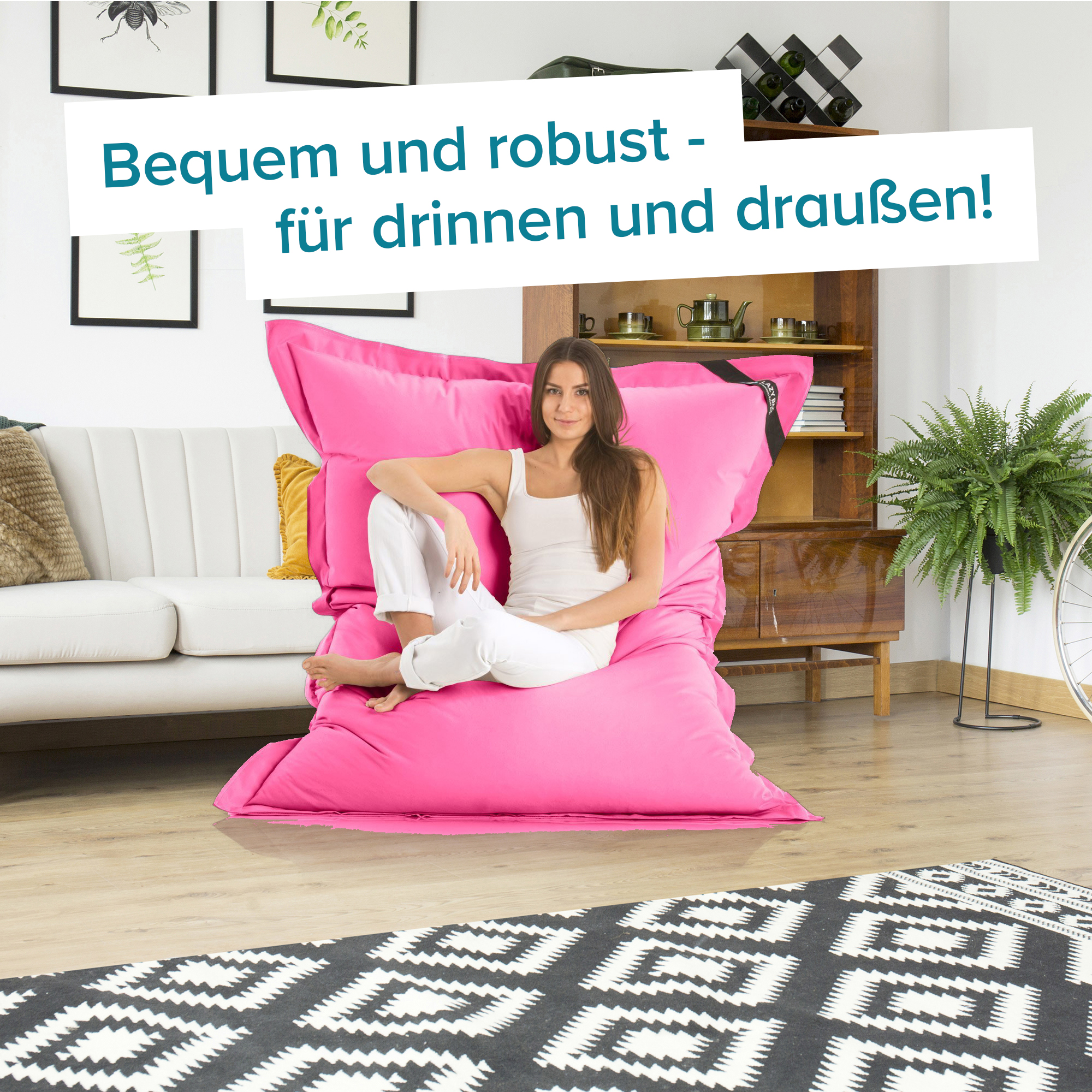 Hineinfläzen und in aller Seelenruhe entspannen: Aus unserem Komfort Sitzsack XXL möchte man nicht mehr aufstehen. Bereichere Dein Zuhause mit diesem bequemen und zugleich ultra flexiblen Alternativ-Möbelstück. Ob zum Lesen oder Fernsehen, als Extra-Sitzgelegenheit in gemeinsamer Runde oder für ein kleines Nickerchen: Der großflächige Riesen Sitzsack lässt sich mit seinen 180 x 140 cm auf alle Lebenslagen und auf jede Körperhaltung ein.