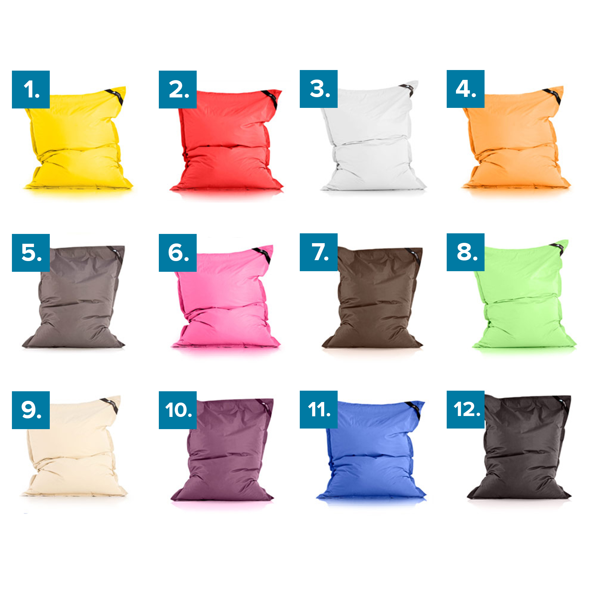 Welche Farbe sagt Dir am meisten zu? Du hast die Wahl aus 12 möglichen Varianten, um den Qualitäts-Sitzsack XXL Eurer heimischen Einrichtung optimal anzupassen. Von Hellgrau und Vanille über Lila, Blau und Orange bis hin zu auffälligem Gelb, Rot oder Pink ist alles dabei.
