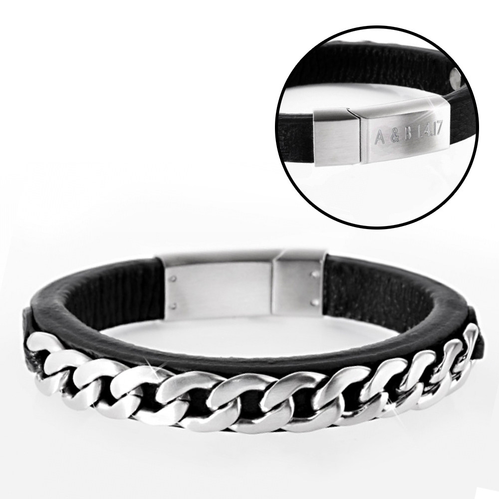 Lederarmband mit Gravur - Panzerkette