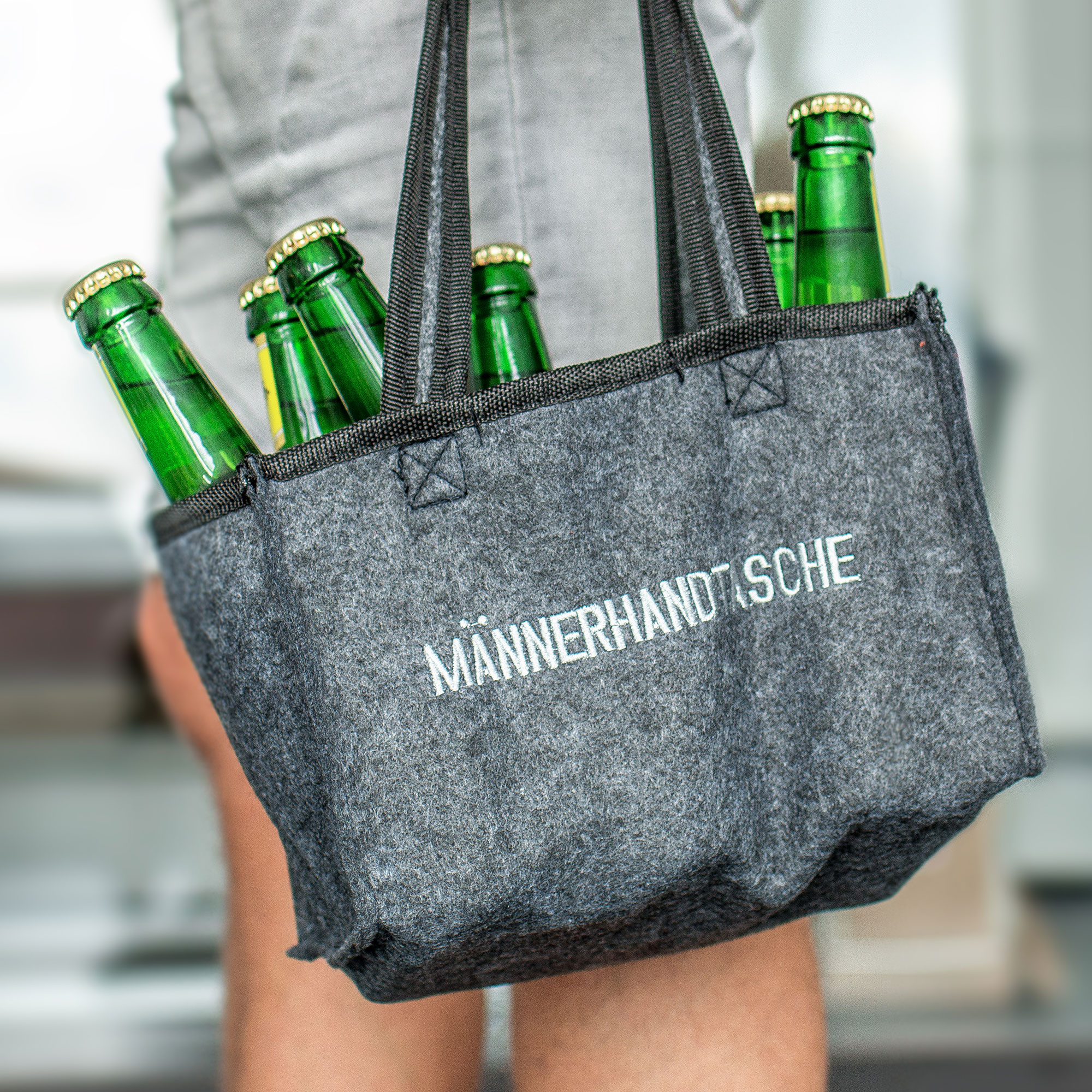 Praktische Männerhandtasche aus Filz für 6 Bierflaschen