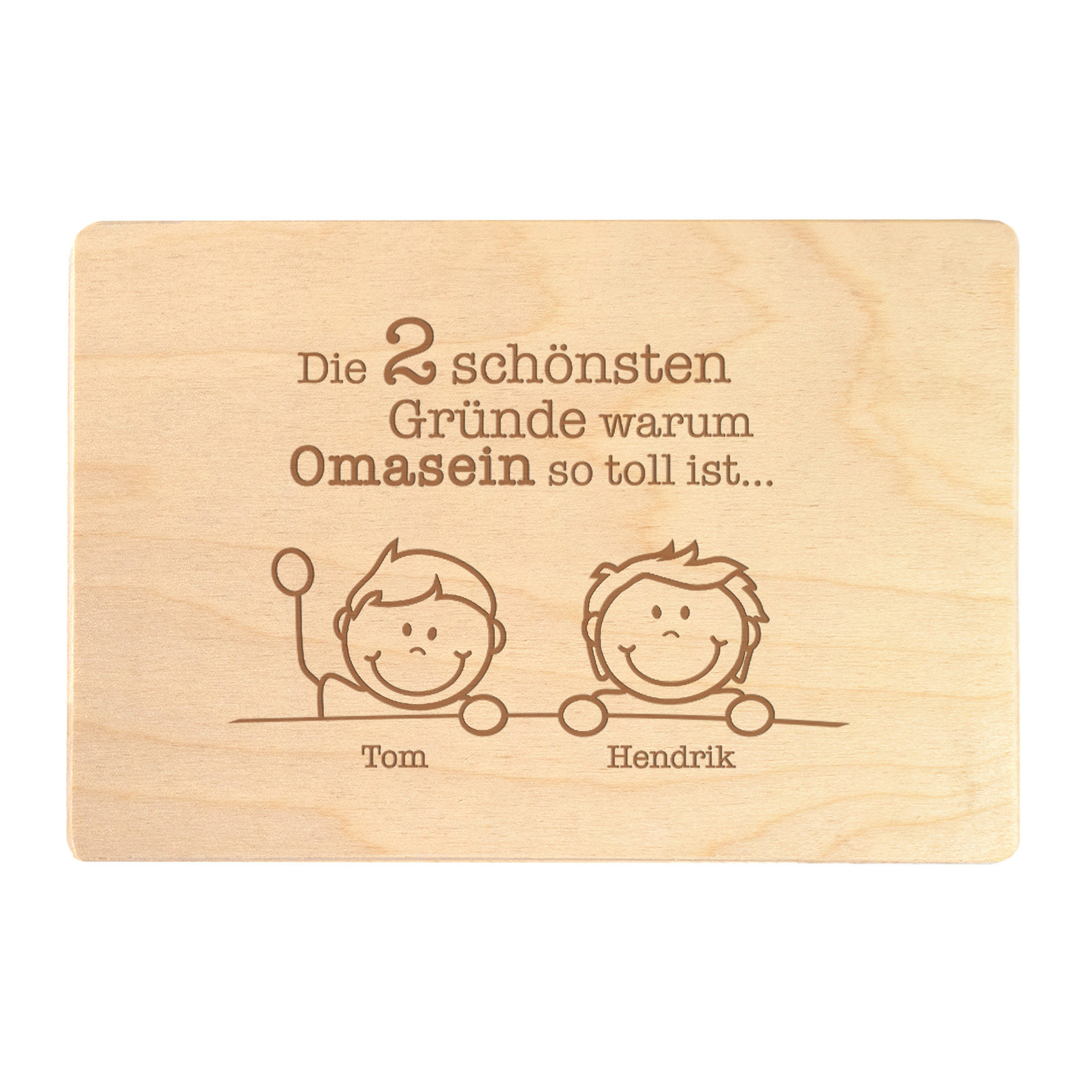 Bald steht ein wichtiger Feiertag an und Du fragst Dich: Was kann ich meiner Oma zum Geburtstag schenken? Weil Du Deine Omi besonders lieb hast, schenkst Du ihr eine Memory Box mit Gravur - Warum Omasein so toll ist als besondere Überraschung. Die kleine Holzkiste mit Deckel aus Kiefernholz sieht mit den abgerundeten Kanten einfach edel aus. Zusätzlichen Komfort beim Öffnen und Schließen bieten der Deckel mit Scharnier und das Halteband. Damit wird das Schmuckkästchen zu einem echten Hingucker. Die Gravur der Gesichter auf dem Deckel vom Schmuckkasten in Verbindung mit den Namen der Enkel macht Dein Geburtstagspräsent einzigartig.