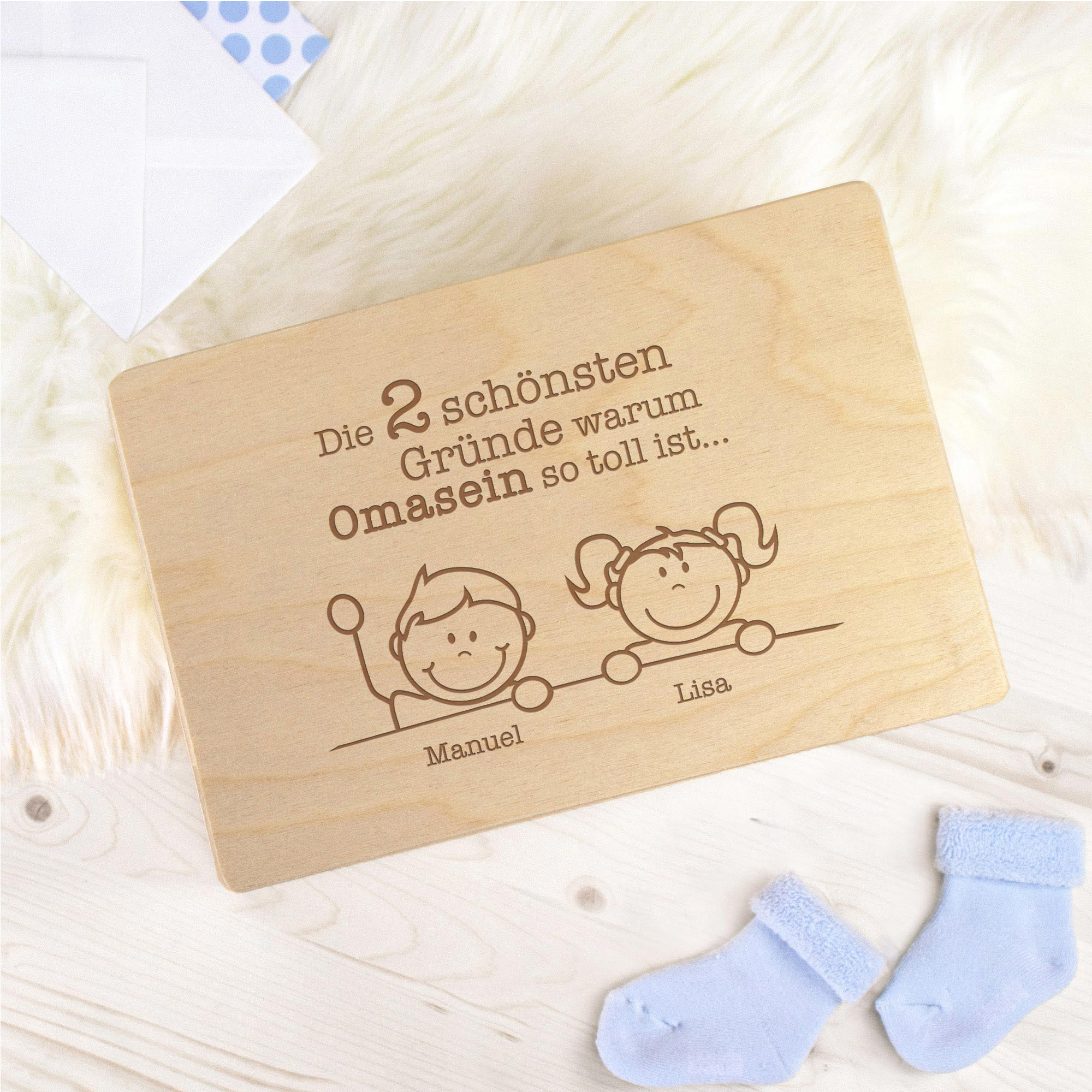 Du denkst jetzt nach: Was sind originelle Geschenke für Oma? Eine Holzkiste mit Deckel, auf der Omi sofort die Namen ihrer Enkel mit lustigen Gesichtern sieht, ist wirklich etwas ganz Besonderes. Diese personalisierte Erinnerungsbox ist ein toller Aufbewahrungsort für Omas Lieblingsaccessoires und wird damit zu einem kleinen Schmuckkästchen. Die Erinnerungskiste ist mit dem Deckel mit Scharnier und Halteband äußerst praktisch und sehr komfortabel. Damit hast Du ein ganz persönliches Geschenk für Oma, an das sie sich gerne erinnern wird.
