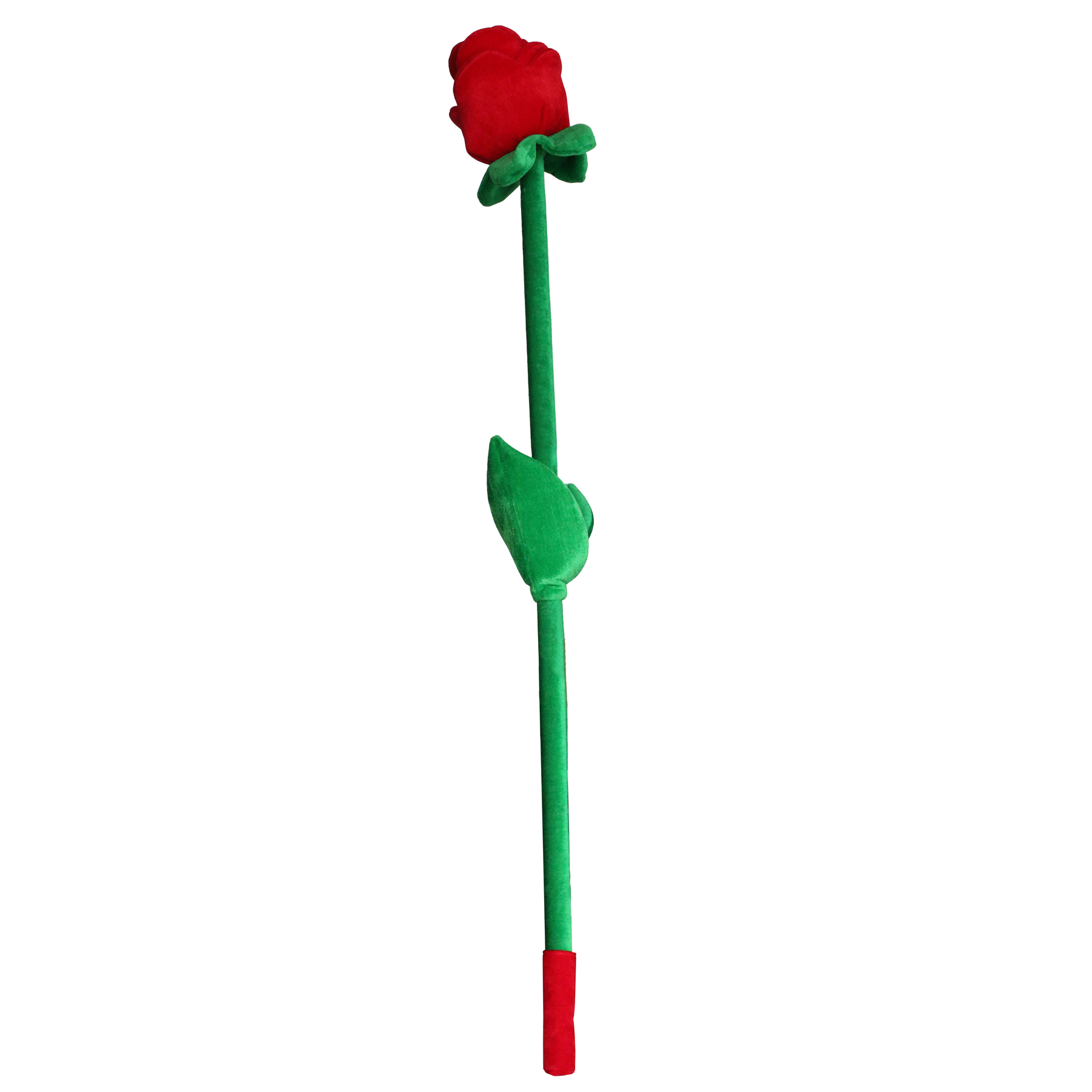 - Bestandteile der Rose: 2 Holzstäbe, ein Verbindungsrohr (Kunststoff), grüner und roter Überzug